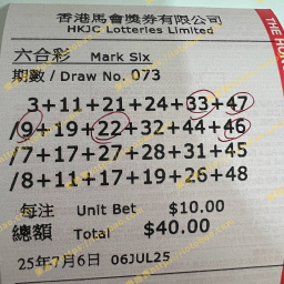 中4字,差少少中頭獎