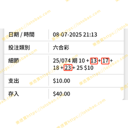 記錄一吓小編自己用樂透寶唔同既數據,唔同既工具去買六合彩既中獎時刻!