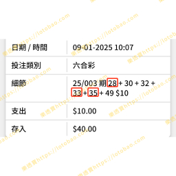 記錄一吓小編自己用樂透寶唔同既數據,唔同既工具去買六合彩既中獎時刻!